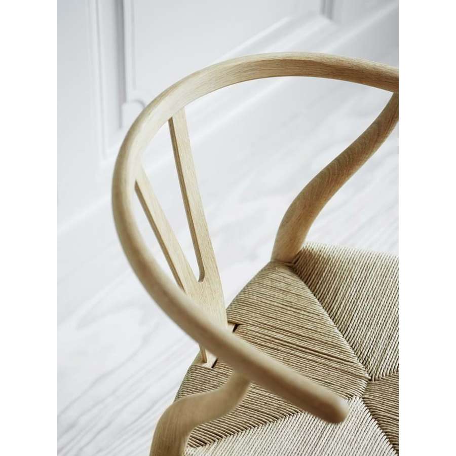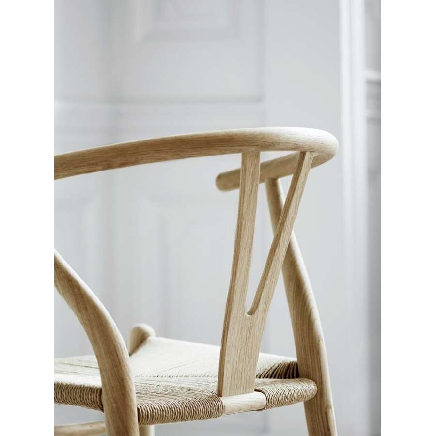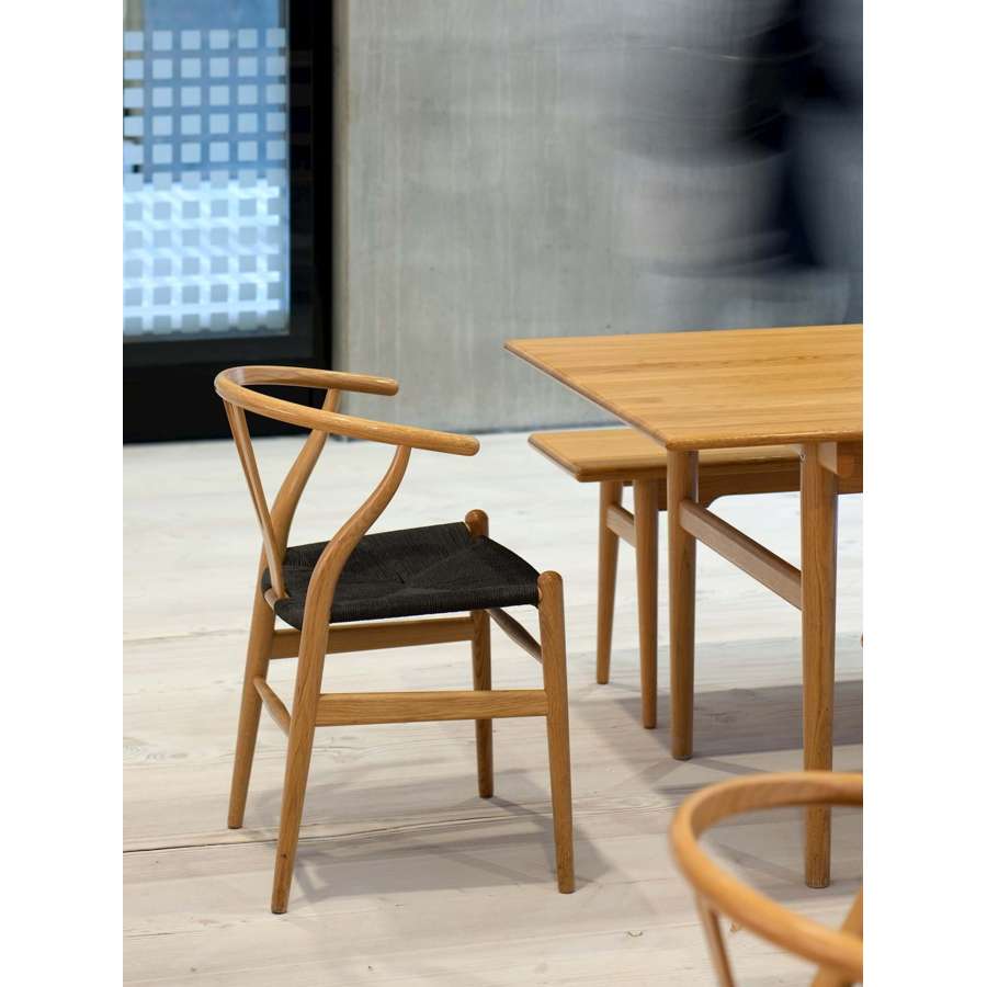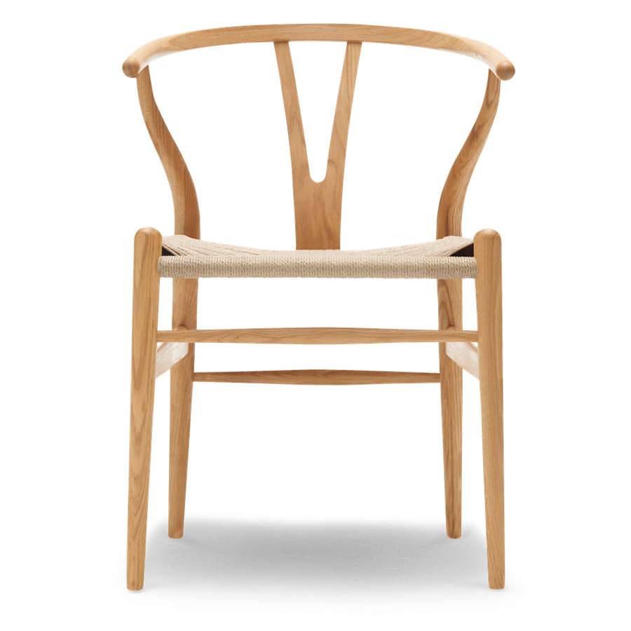 When designing the CH24, Wegner chose to combine the back- and armrest into a single piece. To give stability to the steam-bent top and ensure comfortable support, Wegner developed the characteristic Y-shaped back that the Wishbone Chair is named after.