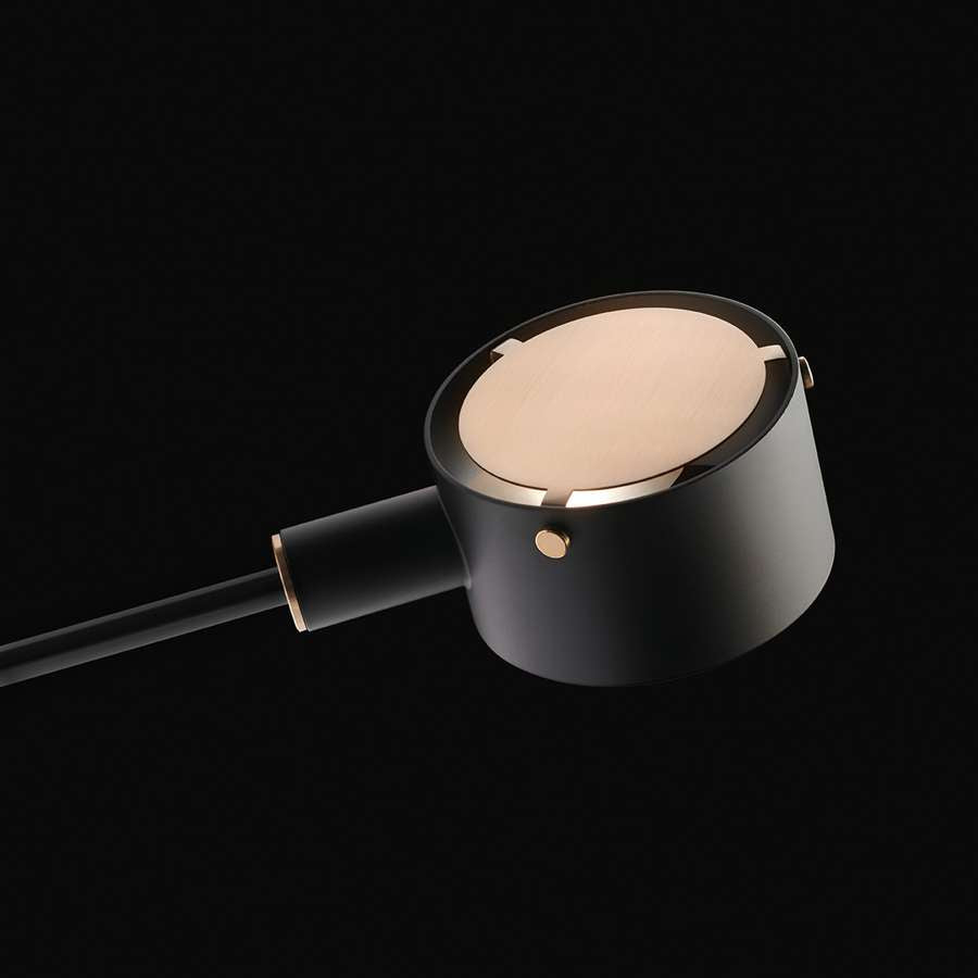 A family which maintains the style of the original design, like the use of the cylindrical lampshade and the contrast between the materials with which the various elements are made. The revival edition is enhanced by precious details in satin gold, which stand out in contrast with the black nickel – of the arm – and the colours of the base and the lampshade, these last two available in three different colours: black, scarlet, and anodic bronze.
