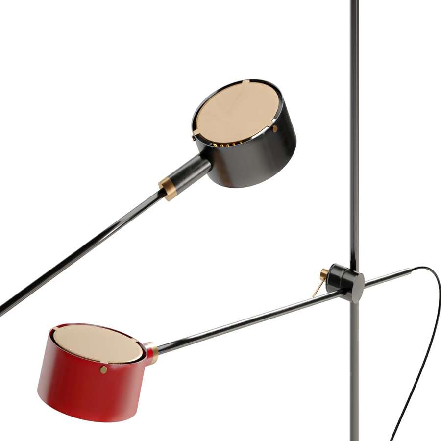 A family which maintains the style of the original design, like the use of the cylindrical lampshade and the contrast between the materials with which the various elements are made. The revival edition is enhanced by precious details in satin gold, which stand out in contrast with the black nickel – of the arm – and the colours of the base and the lampshade, these last two available in three different colours: black, scarlet, and anodic bronze.