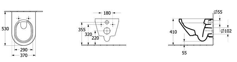 Architectura Washdown toilet, rimless, wall-mounted, 370 x 530 x 355mm, with TwistFlush, White Alpin. With Seat & Cover
