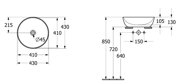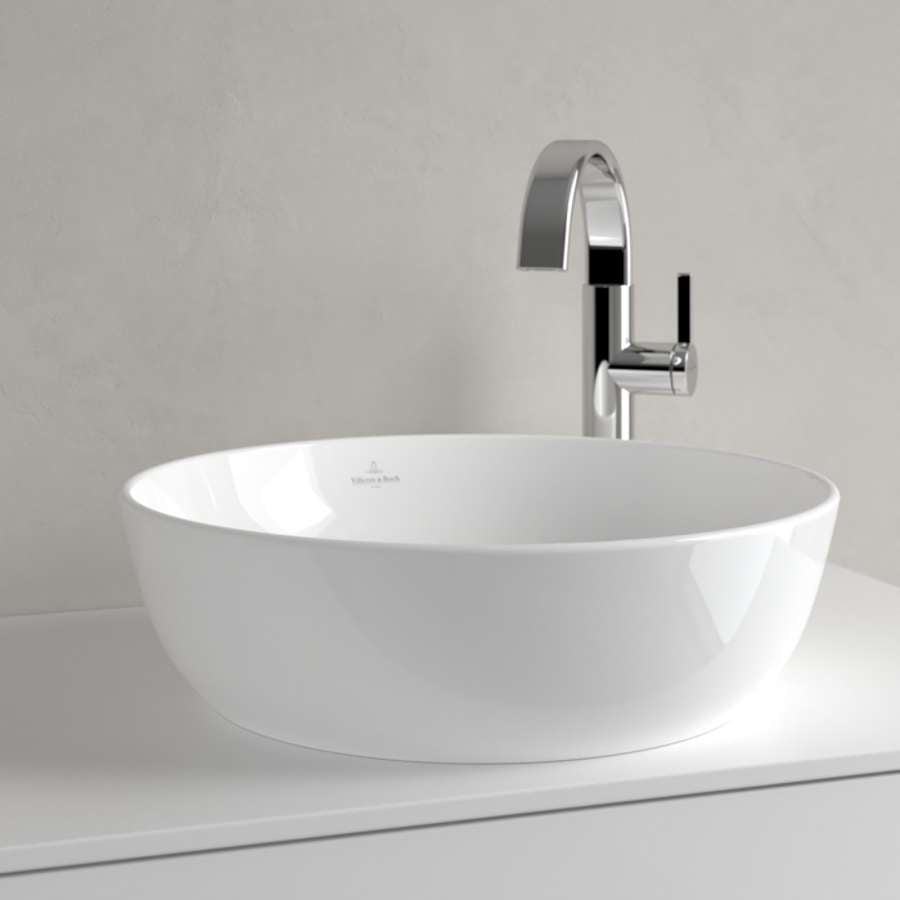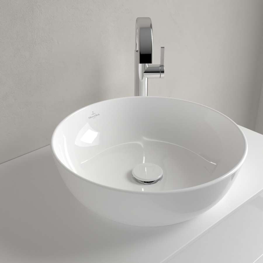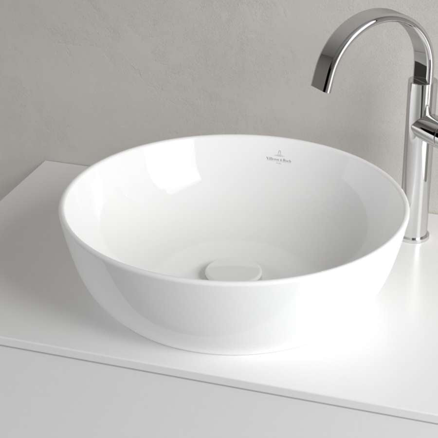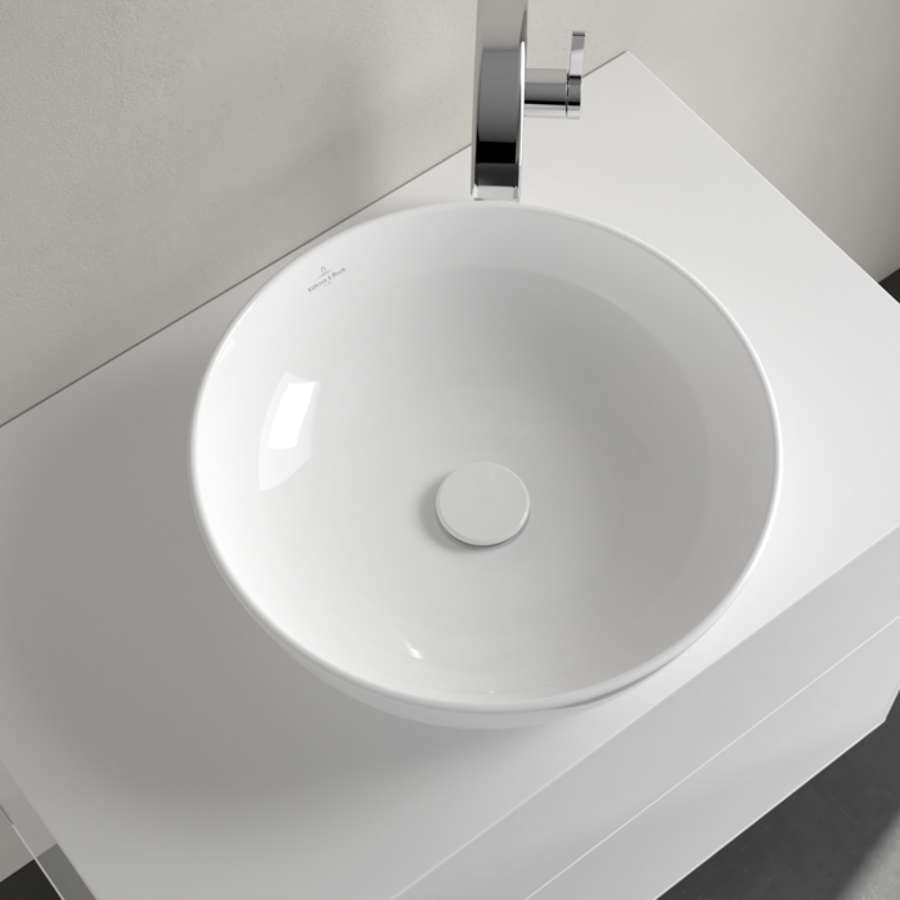 Artis Surface-mounted Washbasin, 430 x 430 x 130 mm, without overflow. With Push-to-open valve, 100 x 135 x 69.5 mm