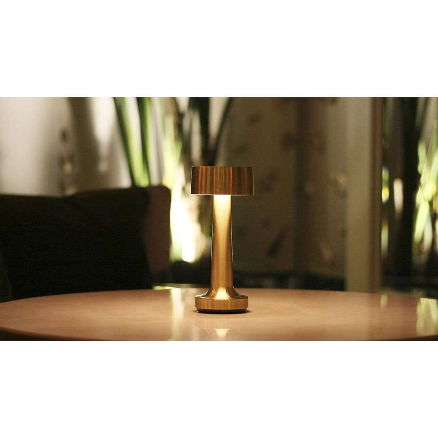 A slim metal bodied cordless table lamp featuring an enclosed cylindrical diffuser giving maximum direct downlight without glare. Ideal for unobtrusive table lighting and for rooms with views through glass as there are minimal reflections. The Cooee 2 has an opal diffuser and top plate providing soft ambient side and downlight. Available in solid Brass, solid Copper and anodised Aluminium.