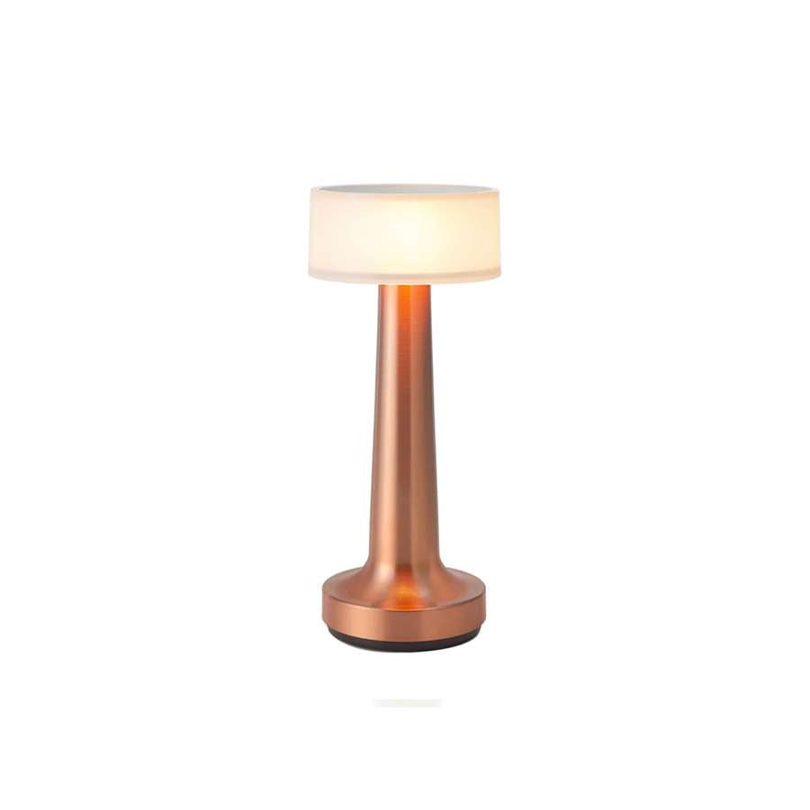 A slim metal bodied cordless table lamp featuring an enclosed cylindrical diffuser giving maximum direct downlight without glare. Ideal for unobtrusive table lighting and for rooms with views through glass as there are minimal reflections. The Cooee 2 has an opal diffuser and top plate providing soft ambient side and downlight. Available in solid Brass, solid Copper and anodised Aluminium.