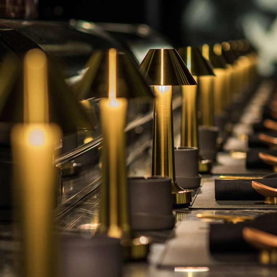 A slim metal bodied cordless table lamp featuring an enclosed cylindrical diffuser giving maximum direct downlight without glare. Ideal for unobtrusive table lighting and for rooms with views through glass as there are minimal reflections. The Cooee 2 has an opal diffuser and top plate providing soft ambient side and downlight. Available in solid Brass, solid Copper and anodised Aluminium.