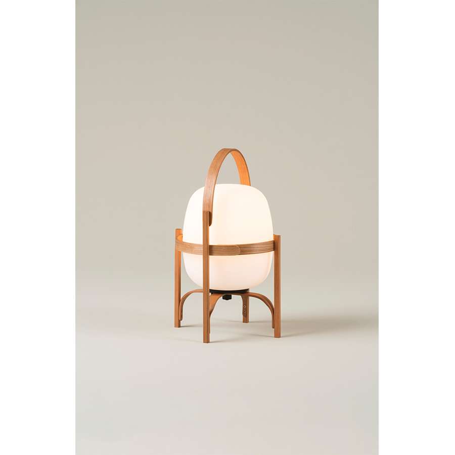 Cestita Batería is the new member of the Cesta family: a portable, cordless version. As with all of Milá’s objects, this version champions industrial craftsmanship, by combining functionalism and the legacy of local artisan creation. With this new version, the lamp’s features are enhanced with the help of technology. Keeping with the family’s warmth and spirit, it features an opal glass shade supported by a beautiful cherry wooden structure. It is produced and assembled manually by European craftsmen, using traditional, steam bending techniques for the wood, and glassblowing techniques for its opal shade. Cestita Batería is a lantern that creates a beautiful ambience anywhere; depicting Chinese shadows in the garden, or emanating light from any corner.