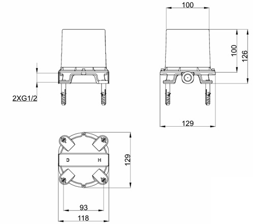 Fastening for floor-standing bath mixer 126mm x118mm x129mm in