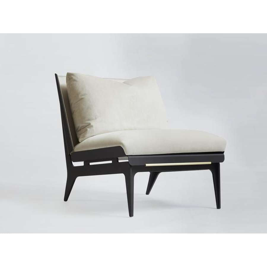 A classic seating silhouette reinterpreted, GABRIEL SCOTT plays with rounded metal lines and layering effects to create the BOUDOIR series. A French pebbled leather lining hosts a plush tone-on-tone fabric cushion sitting on top of the curved metal shell fusing solid with soft. The BOUDOIR makes lounging an elegant experience by instilling depth and movement into each piece. With brass hardware embellishments, the BOUDOIR is available as a daybed, chaise longue, loveseat or chair with ottoman. Various metal and leather colors available.