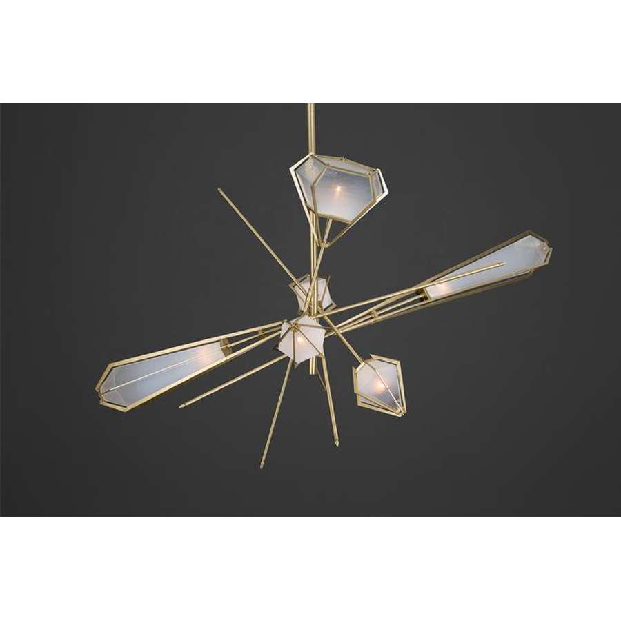 Gabriel Scott - Chandelier, , Satin Brass Alabaster White Brown Glass Satin Brass Canopy