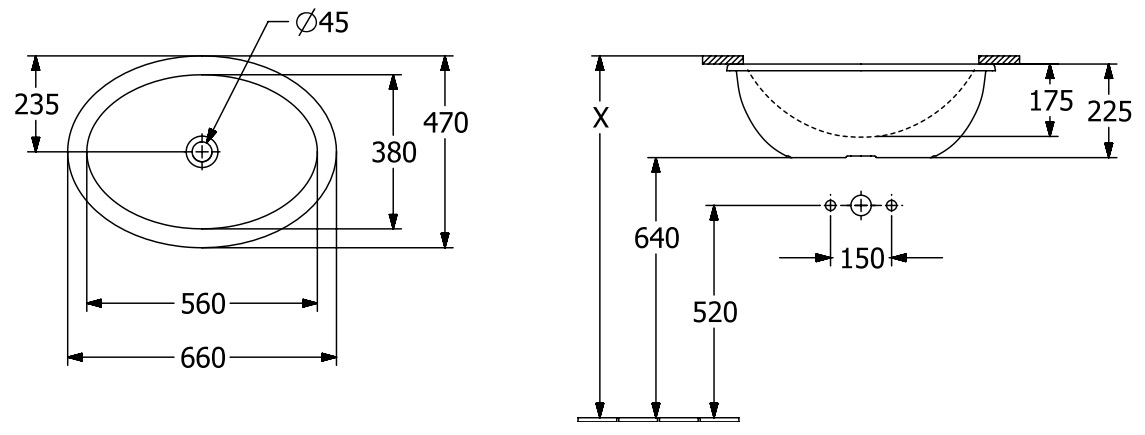 Loop & Friends Undercounter washbasin, 560 x 380 x 220 mm, with overflow, outside surface glazed, White Alpin