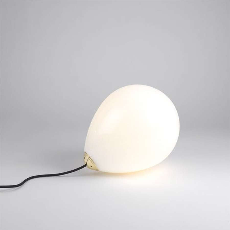 On My Mind is a table or floor lamp that resembles a head resting on its side, or a balloon lightly touching the ground. The shape of the lamp allows it to roll freely on surfaces, allowing the light to be expressed through movement, rather than just as a stationary object.