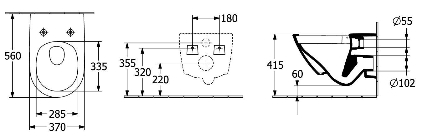 Subway 3.0 Washdown toilet, rimless, wall-mounted, 370 x 560 mm, with Twist Flush. With Seat & Cover