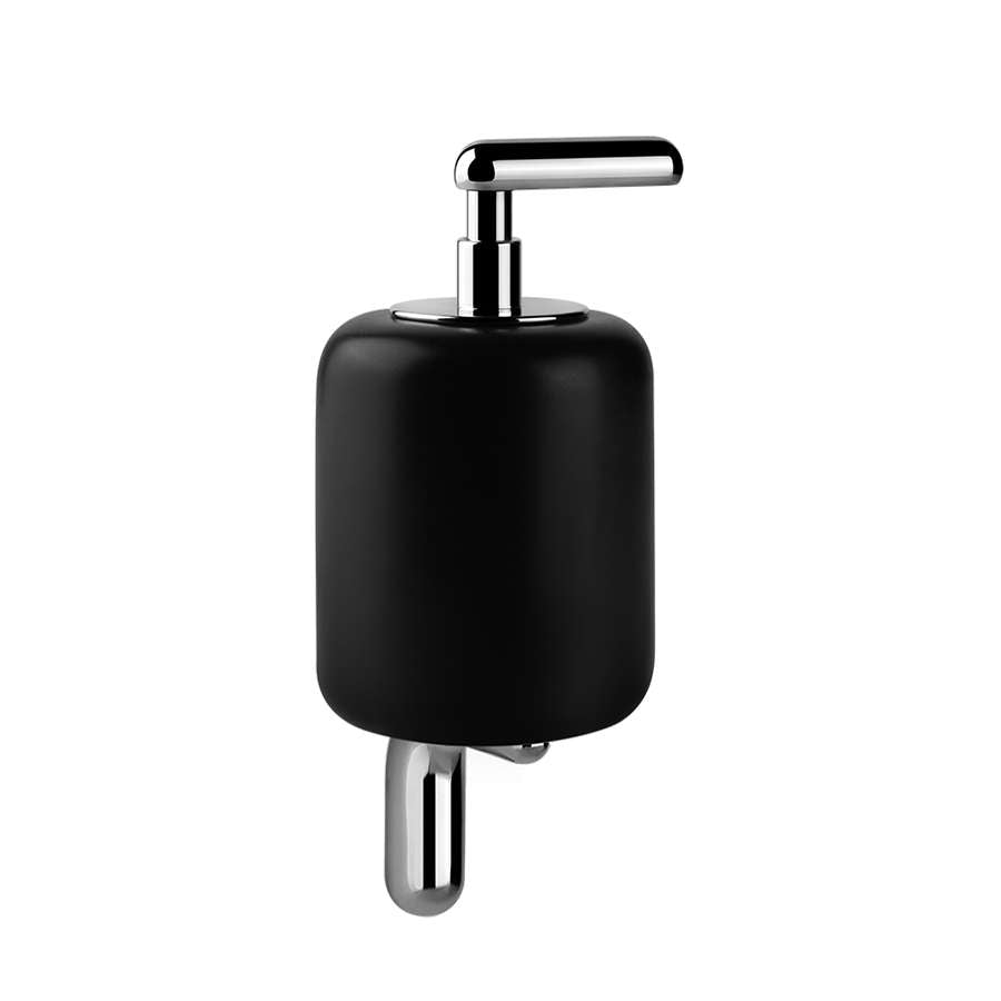 Inspired by the fluid and natural shapes of water, the Prospero Rasulo-designed Goccia wall-mounted soap dispenser in black GRES glass and brushed chrome finish fuses the finest Italian craftsmanship with sleek, minimalist elements, imbuing a sense of understated elegance to the bathroom interior.