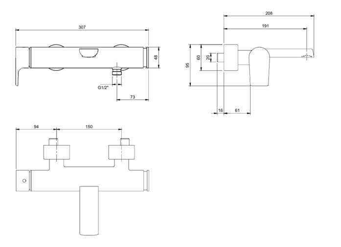 Single-lever bath?& shower?mixer 95mm x307mm x208mm in Chrome