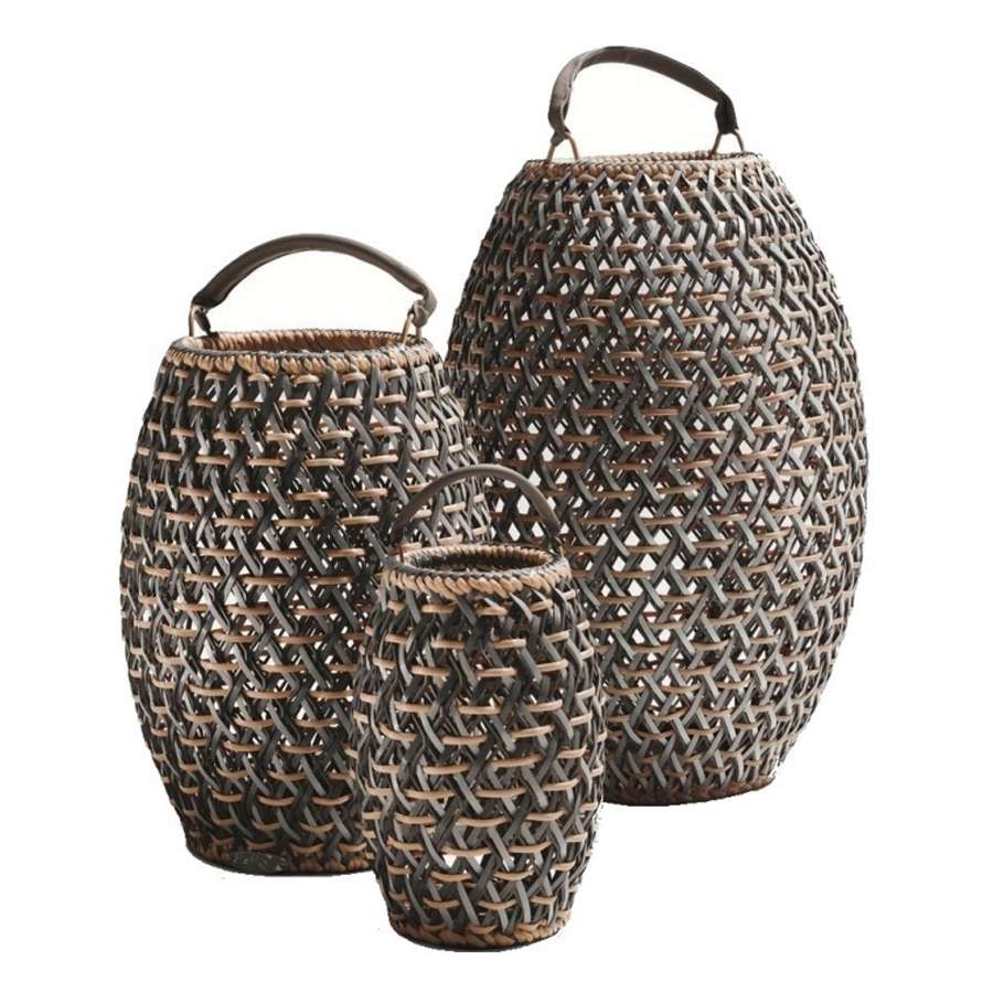 This Dala lantern features open weaving to let candlelight through. Elegant, man-made leather handles allow you to hang it or place it on the ground.