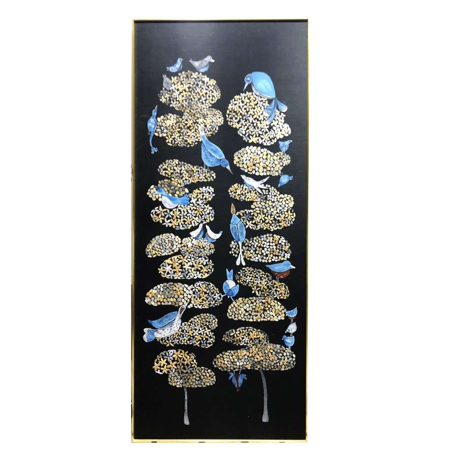 Lala Curio Flora & Fauna Custom TS-22 Cloud Tree Framed Art hand-painted & embellished silk wallpaper 830 x 1800 mm