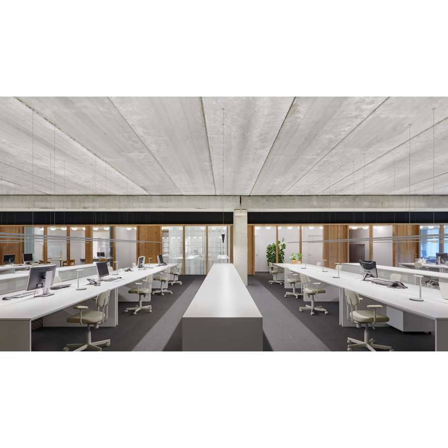 Professional table lamp with patented asymmetric optics. External power supply included with 1500-mm cable. USB-C connection integrated into the base of the device to recharge compatible devices. Base with Qi compatible wireless recharging system for mobile devices and wireless recharging cases for compatible devices.